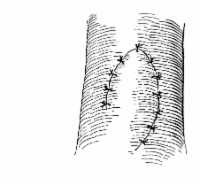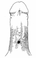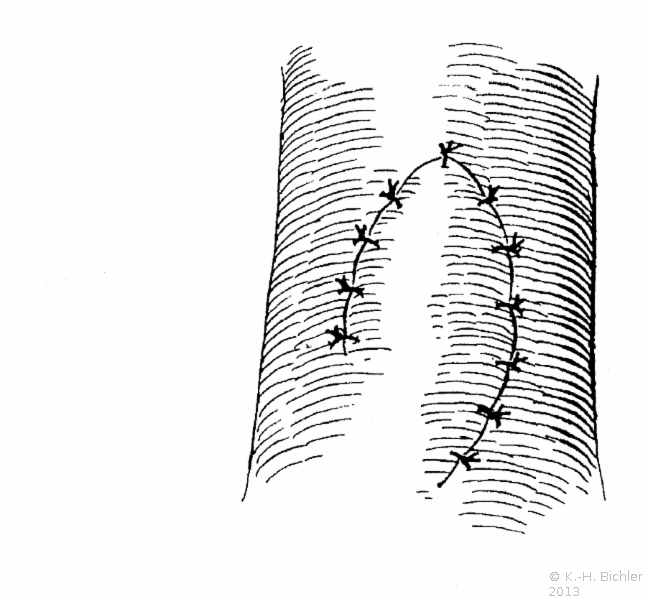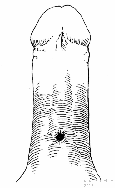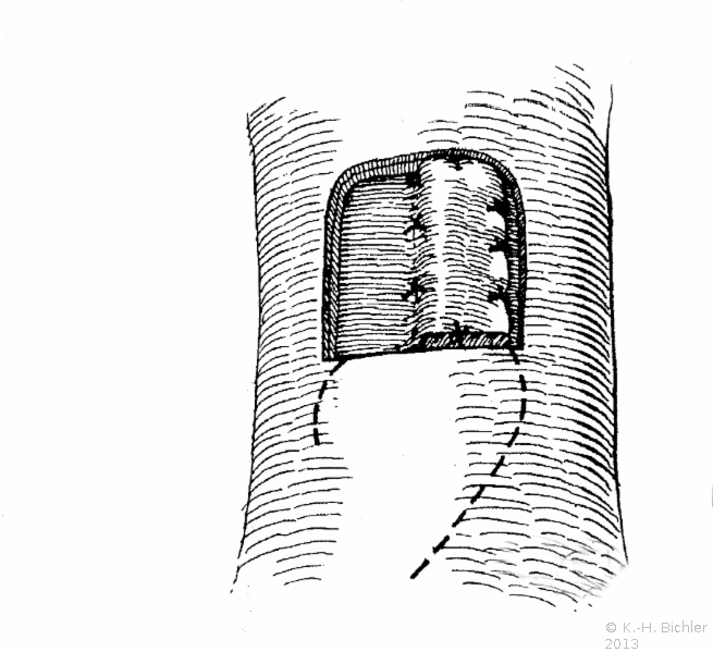 Die Abbildung HG1 zeigt einen mehrschichtigen Fistelverschluss in der Methode nach Literatur:Peters, P. C.: "Complications of penile surgery" in Smith, R. B. et al: "Complications of urologic surgery", Saunders Philadelphia, 1976 .
