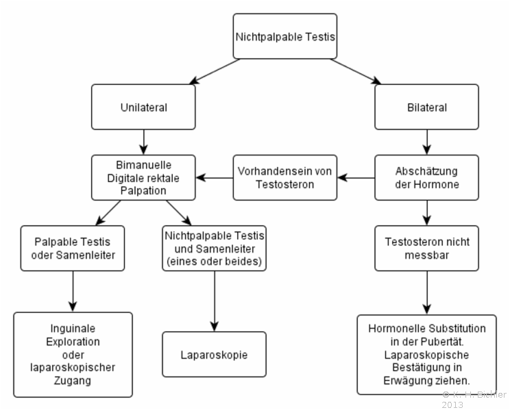 Die Untersuchung muss fernerhin auch evtl. ektopische Hoden erfassen (perineal bzw. femoral).
