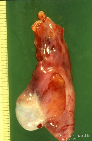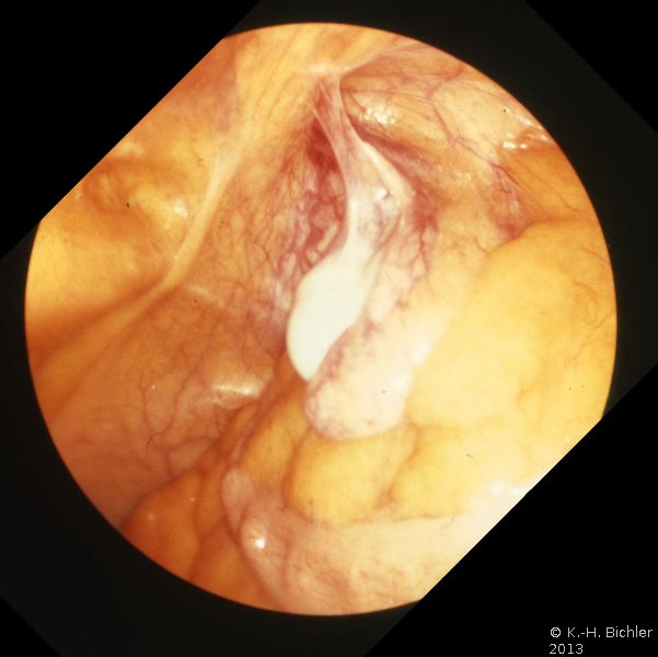 Die Abbildung zeigt die laparoskopische Darstellung eines atrophischen Bauchhodens bei einem 25 Jahre alten Mann (Abbildung 5). Die Atrophierate des Bauchhodens beträgt bis zu 20%.