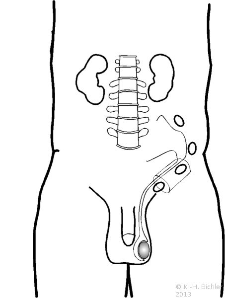 Literatur:J. M. Gatti et al: "Bimanual digital rectal examination for the evaluation of the nonpalpable testis", J. Urol., 170, 207-210, 2003. Fernerhin ist ein hCG-Stimulationstest zu bedenken (s.u.).