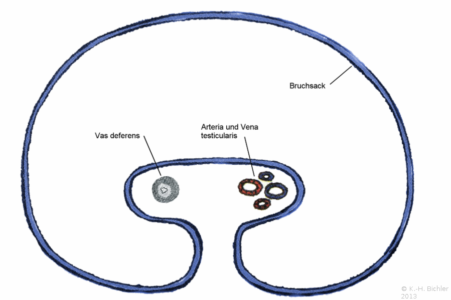 Der Samenstrang muss von sämtlichen Cremasterfasern, Bindegewebszügen und ggf. vom Bruchsack unter Schonung der Samenstranggefäße (Vorsicht! postoperative Hodenatrophie) bzw. des Samenleiters befreit werden (Abbildung 7,8) (Abbildung HG1).