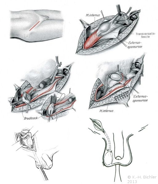 Der Zugangsweg erfolgt über eine Inzision in der inguinalen Hautfalte und Eröffnung der Externusaponeurose und damit des Leistenkanals. Operationsprinzip ist die Mobilisation der Samenstranggebilde, die eine spannungsfreie Verlagerung des Hodens in das Skrotalfach erlaubt.