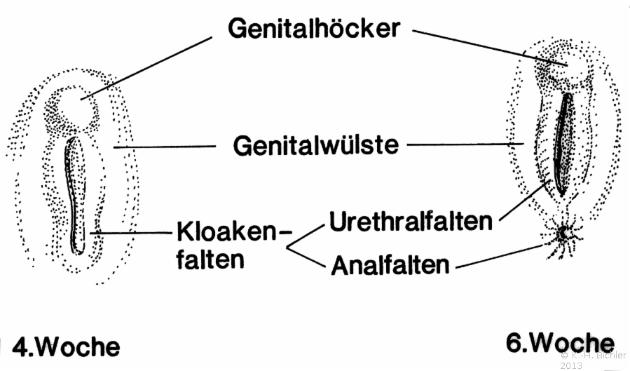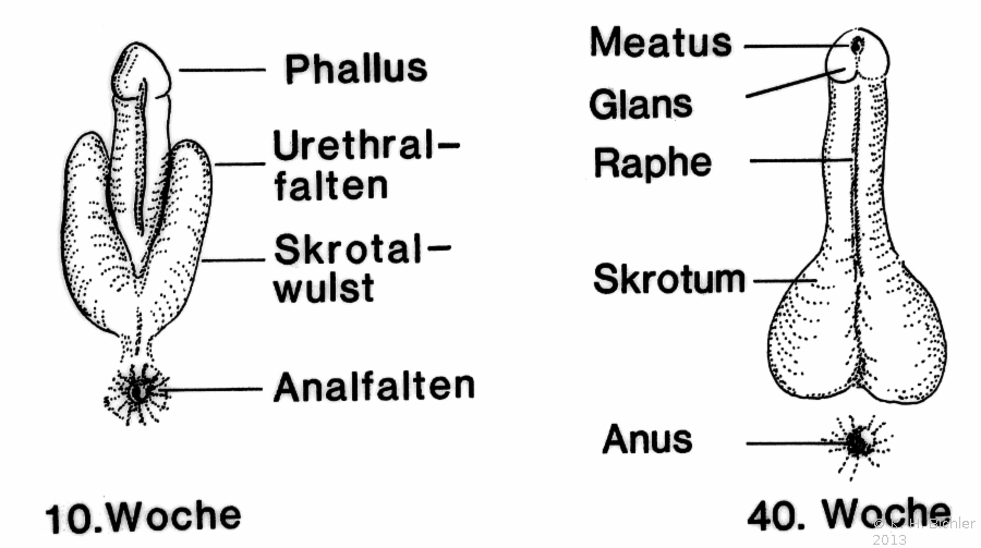 Die normale männliche sexuelle Entwicklung erfolgt nach der Festlegung des genetischen Geschlechts XY in zwei Schritten und zwar der Übersetzung des genetischen in das gonadale Geschlecht. Aus der undifferenzierten Genomanlage entsteht der Hoden und im zweiten Schritt bildet das gonadale das phänotypische Geschlecht aus. Aus dem Sinus urogenitalis, dem Genitalhöcker und den Genitalwülsten entwickelt sich von der 4. bis zur 40. Woche das phänotypische Geschlecht mit dem Phallus, der Urethra und dem Skrotum (Abbildung HG1).