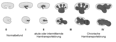 Zur Symptomatik im Säuglingsalter zählt ein tastbarer Tumor im Abdomen. Im weiteren sind bei älteren Kindern bzw. Jugendlichen Flankenschmerzen zu nennen. Rezidivierende Harnwegsinfekte, Hämaturie bzw. Harnsteine führen zur Abklärung (s. Urolithiasis/Therapie/Abbildung 10)