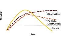 Die Nierenfunktionsszintigraphie (NF-SZ) ist der "Goldstandard" zur Begutachtung der Ureterabgangsstenose. Die Untersuchung ergibt sowohl Informationen zur Nierenfunktion als auch zur Obstruktion (Abflussverhältnisse). Insbesondere mit der Diureserenographie sind wertvolle diagnostische Hinweise zu erhalten. Die Abbildung zeigt synoptisch die Kriterien der Untersuchung bei Ureterabgangsstenose (Abbildung 7).