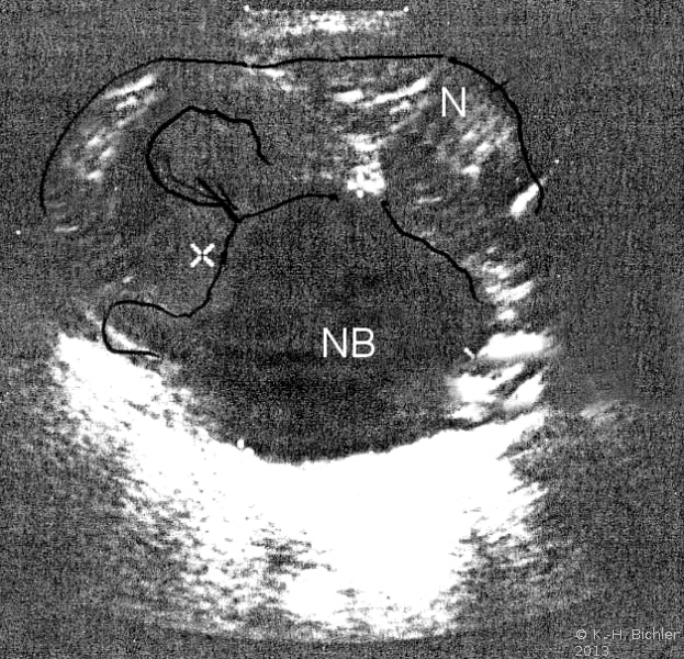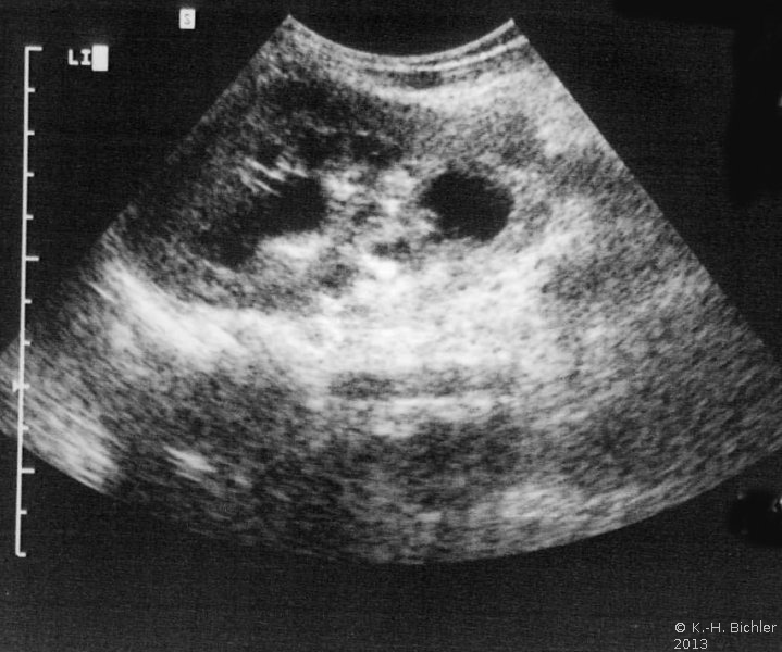 Auch bei komplizierten Veränderungen wie Hufeisenniere mit gestautem Nierenbecken sind zur OP-Planung bildgebende Verfahren angezeigt (s. Form/Hufeisenniere/Abbildung 2).