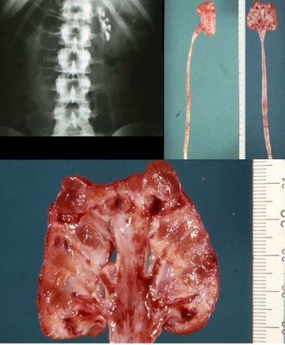 Beim Vorliegen bzw. der Entwicklung einer kleinen Niere spielt nicht nur die primäre Krankheit eine Rolle, sondern bei der Mehrzahl handelt es sich um einen komplexen Vorgang z.B. Schrumpfniere bei Refluxnephropathie: Morphologische Störung in Folge verzögerter Maturation oder klaffendes Ostium bzw. zu kurze intramurale Strecke des Harnleiters, rezidivierender Harnwegsinfekt, hydrostatischer Druck durch Reflux bzw. zusammengesetzte Papillen (Compound papillae) Literatur:Bostwick, D. G.: "Urologic Surgical Pathology", Mosby St. Louis, 1997.