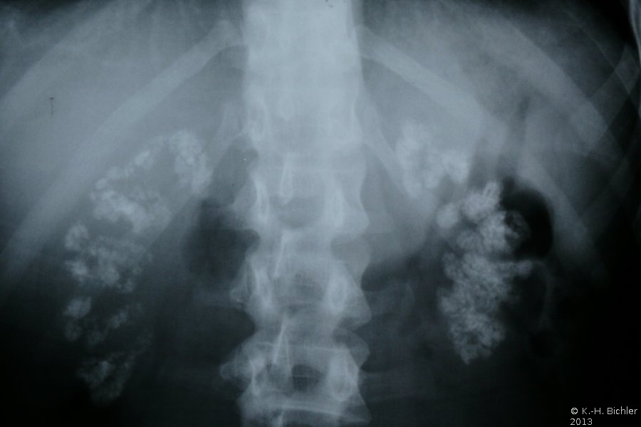 Das klinische Bild ist symptomatisch geprägt von rezidivierenden Nierenkoliken, Harnwegsinfekten und Dysurie.
