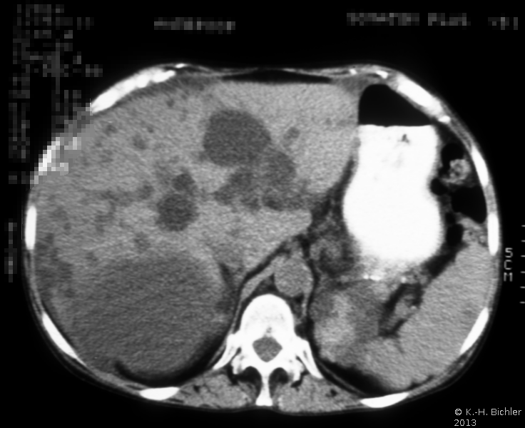 Die Diagnose wird mittels Anamnese (zystische Nierenerkrankungen in der Familie), RR-Messung, Labor (Kreatinin) mit genetischer Untersuchung, Sonographie, Computertomographie und gegebenfalls Kernspintomographie gestellt (Abbildung 4).