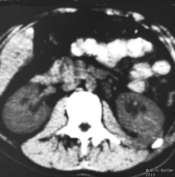 In einer weiteren Beobachtung bei einem 19jährigen Jugendlichen konnte der linksseitige Nierenabszess durch alleinige antibiotische Behandlung beherrscht werden (Abbildung 11).