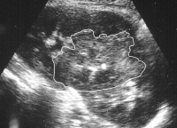 Die Abbildung zeigt als weiteres Beispiel die sonographische Darstellung eines ausgedehnten paranephritischen Abszesses (Abbildung 7).