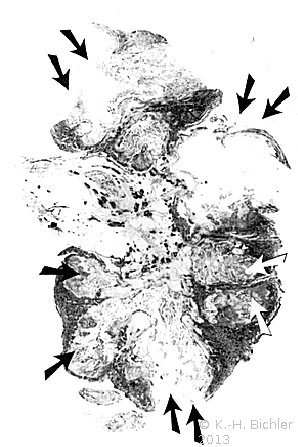 Sie tritt zumeist bei Patienten mit Diabetes Mellitus bzw. bei Harnwegsobstruktionen auf (Komplizierte Pyelonephritis). Dabei können eine oder alle Papillen befallen sein. Histologisch findet sich eine koagolative Infarktnekrose, d.h. die Umrisse von befallenen Tubuli sind erhalten. Leukozytäre Reaktionen finden sich an den Rändern der Nekrosebezirke Literatur:Robbins: "Pathologic Basis of Disease", Saunders Philadelphia, 1999.