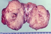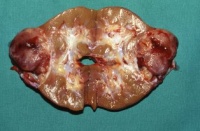 Im Zusammenhang mit der Heterogenität bzw. der molekularen Genetik der Wilmstumoren ist das Vorkommen einer prämalignen Struktur (Präkanzerose), der "Nephroblastomatosis" zu nennen. Es handelt sich um multizentrische, bzw. diffuse Nester von unreifem, nephrogenem Gewebe in Bezirken von normalen Nierenanteilen. Die Nephroblastomatosis kann in ein malignes Nephroblastom übergehen (s. Abbildung 3).