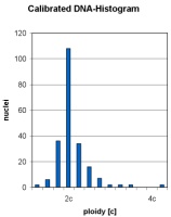 Auf der Schnittfläche stellen sich zystenartige Veränderungen und solide Areale dar (Abbildung 4a). Histologisch erkennt man multiple Zysten und Septen aus fibrösem Gewebe. Die Zysten sind von einem flachen, kubischen Epithel ausgekleidet (Abbildung 4b). Die Zytometrie zeigt einen diploiden DNA-Gehalt (Abbildung 4c).