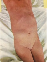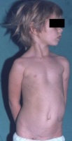 Zumeist fällt bei den erkrankten Kindern ein vergrößertes Abdomen (Vorbuckelung) auf (Abbildung 5). In 70% bis 90% der kleinen Patienten ist ein Abdominaltumor tastbar, der von den Eltern (ca. 60%) oder dem Kinderarzt bei der Vorsorgeuntersuchung (ca. 10%) entdeckt wurde. Bei der Untersuchung der Kinder sind die Inspektion und Palpation des Abdomens daher von großer Wichtigkeit. Es handelt sich palpatorisch zumeist um einen glatten, festen Tumor, der oft über die Mittellinie hinausragt. Bei der Palpation eines abdominellen Tumors im Kindesalter ist vorsichtig vorzugehen wegen der Gefahr der Tumorruptur und eventueller Zellaussaht.