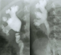 4. Ausscheidungsurogramm vor und nach der Steinentfernung und Operation der Ureterabgangsstenose nach Anderson-Hynes