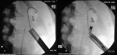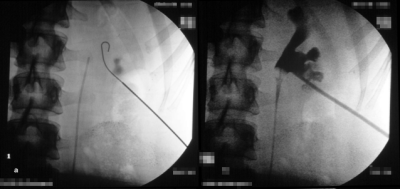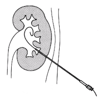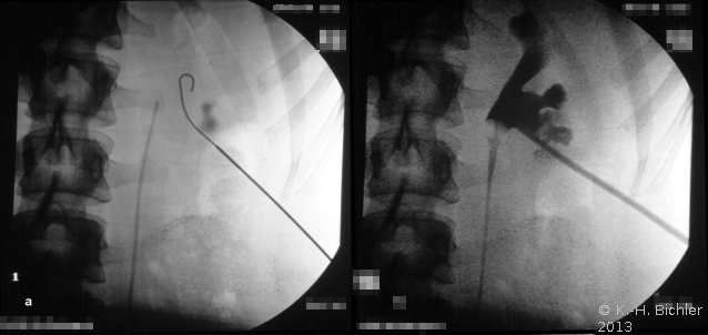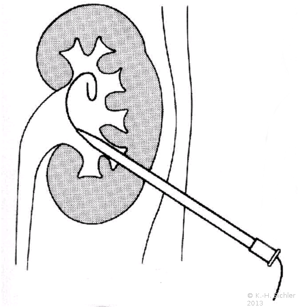 Die Abbildung zeigt das perkutane Vorgehen bei einem Nierenbeckenkelchstein (Abbildung 9).